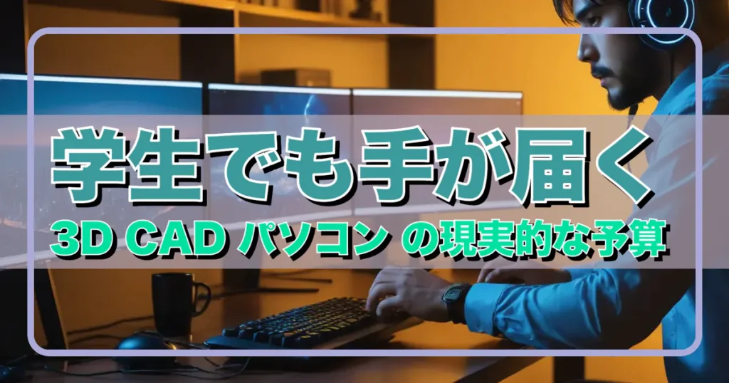 学生が3D CADパソコンに必要な予算とは 現実的な予算ラインは12万円から18万円 学生が3D CADを快適に動かせるパソコンを手に入れるには、12万円から18万円の予算を確保する必要があります。 この価格帯であれば、Fusion 360やSolidWorksといった主要な3D CADソフトを実用的に動かせる性能が手に入ります。 「3D CADって高性能なワークステー… -